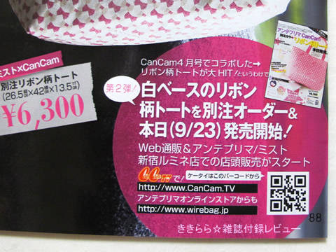 (キャンキャン) 2010年 11月号」特別付録ANTEPRIMA/MISTOリボン柄メガポーチのフラゲレビューです。