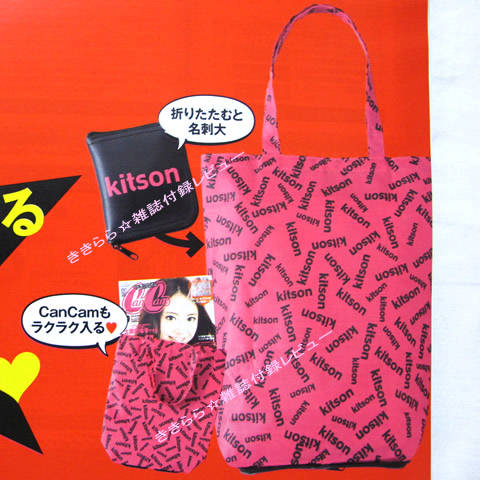 付録は「kitsonの小さく畳めるロゴトート」折りたたむと名刺大 CanCamっもラクラク入る♥ |