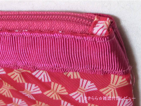 サイドの縫製 薄手のナイロン地でパイピングされています。 |