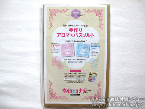 発売中の「ケイコとマナブ首都圏版 2010年 09月号」豪華付録 手作りアロマ★バスソルトの画像レビューです。