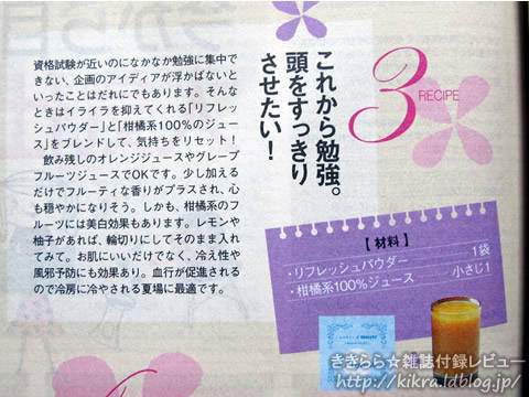 レシピ3 イライラすっきり リフレッシュパウダー、柑橘系100%ジュース |