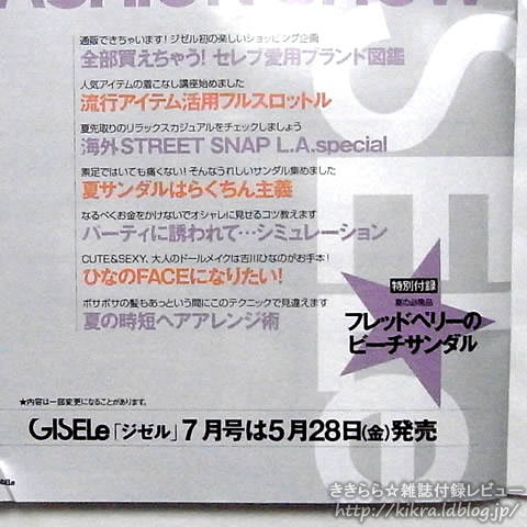 GISELe (ジゼル) 2010年 07月号 付録は「夏の必需品フレッドペリーのビーチサンダル」 |