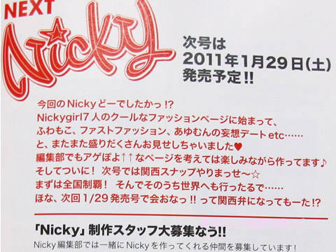 1/29(土)発売のNicky (ニッキー) 2011年 02月号予告 |