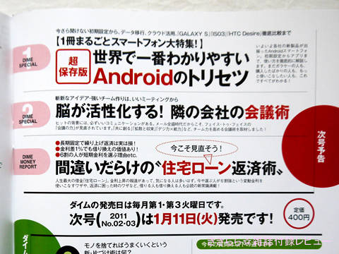 1/11(火)発売のDIME (ダイム) 2011年 No.02・03号 |