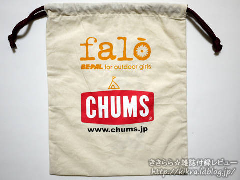 「falo (ファーロ) 2011年 05月号」特別付録CHUMS別注コットンバッグでした。