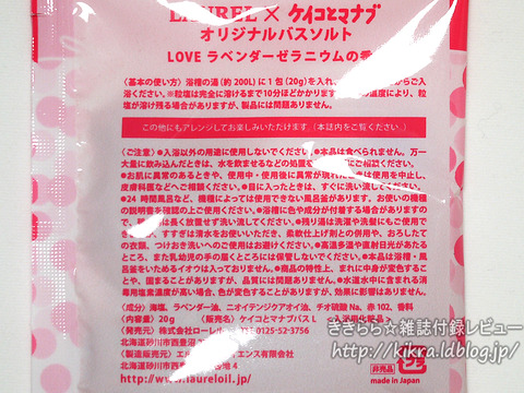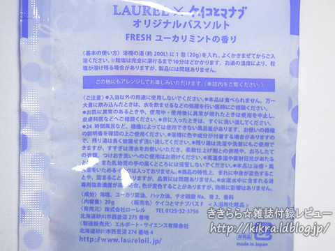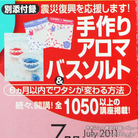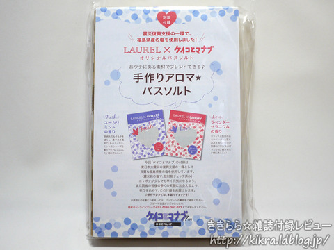 発売中の「ケイコとマナブ首都圏版 2011年 07月号」特別付録手作りアロマ★バスソルトのレビューです。