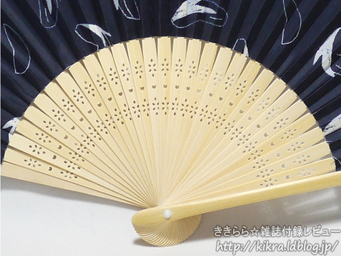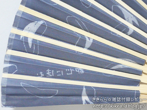 シャキッと開くし、閉じたときに扇子が広がらない竹骨のしっかりさ。本誌300円で、そこそこ良い作りの扇子が付録になるならお買い得だと思います。