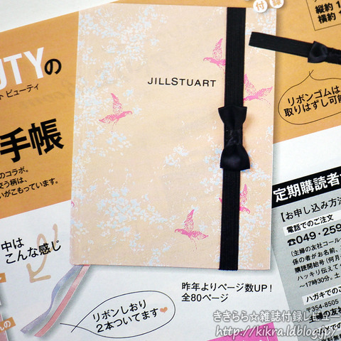 付録はJill Stuart Beauty(ジルスチュアートビューティ)リボンゴムつき♥2012年マンスリー手帳 縦18×横12.5cm 全80ページ |