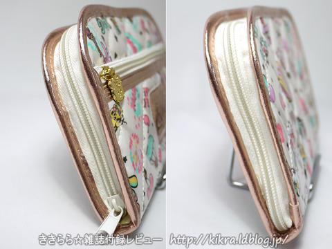 | ★計測サイズ W22×H14×D2.5cm 重さ:149g 大きさ目安:官製はがきと比較・いろいろIN(twitpic) ★カラー:Fairy Sky 表地:PVC製のキルティング生地×PVC製テープパイピング PU中綿入り ファスナー:大き目の引き手パーツ スルスル軽い、かなりスムーズな動作 内側:ポリエステルサテンに、つるつるな裏PVC加工の厚手生地の1枚仕立て ケーズ中央のファスナー付きポケットのみ、ポリエステルサテンが2枚重ねになってる ★画像拡大ページ(800×600px) |