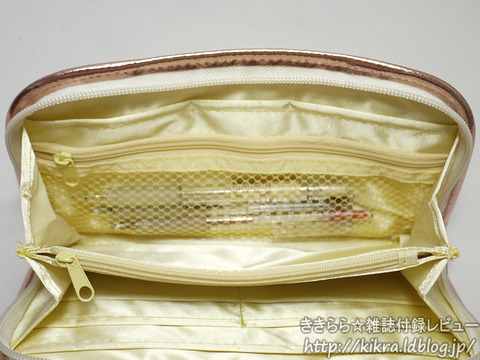 HbG(エイチビィジィ)のブランドムック第3弾。前回まではバッグ2種類(2冊)同時発売でしたが、今回はマルチケースとバッグそれぞれ違う柄で2冊発売になります。マルチケースは、今まで発売されたムック本バッグと同じ素材が使われているし、内側のポリエステルサテン(裏PVC)が厚手でシッカリしてるので、付録目当てで買う人には十分満足できる品質です。ケース内ポケットの多さにも、縫製の丁寧さにも1,260円ならお買い得だと思います。