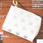 5つの開運ポイントを盛り込み、持っているだけで2022年がハッピーになること間違いなし! のコンパクトな二つ折り財布は、ポップなドット柄プリントと引き手の馬蹄チャームがポイント。