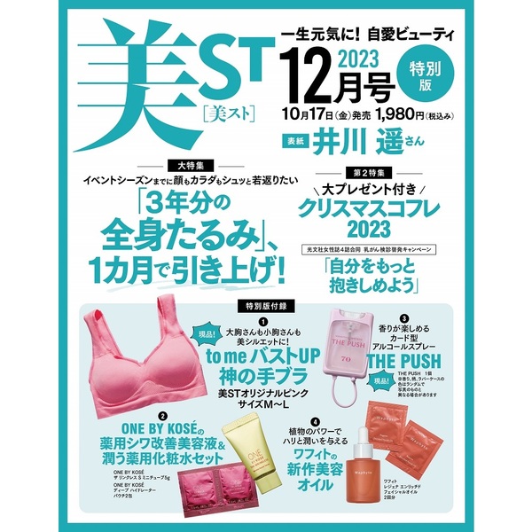 | 発売日:2023年10月17日 光文社 美ST (ビスト) 2023年 12月号 950円 《付録》 1.SABONのボディーローション3種セット 2.ONE BY KOSÉの薬用シワ改善美容液&潤う薬用化粧水セット |