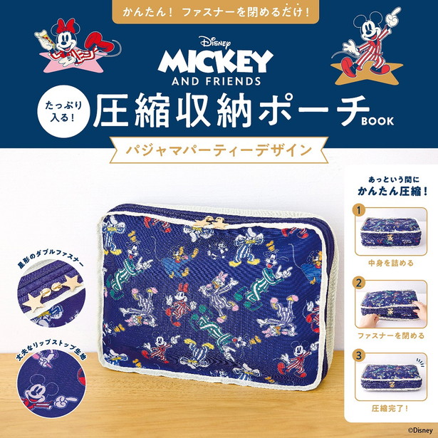 【新刊情報】Disney MICKEY AND FRIENDS たっぷり入る! 圧縮収納ポーチBOOK パジャマパーティーデザイン